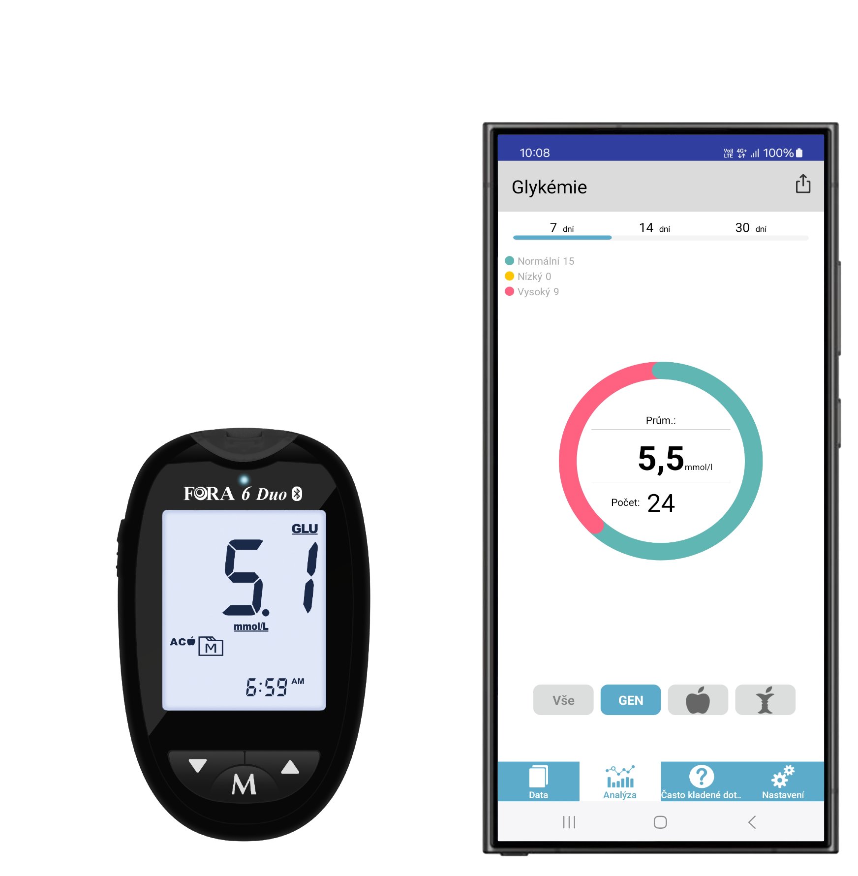 Glukometr FORA 6 Duo a jeho příslušenství je zdravotnický prostředek. Proto je důležité si před začátkem jeho používání přečíst návod k použití. Díky pečlivému prostudování návodu nebude docházet ke zbytečným chybám. Glukometr FORA 6 Duo je vybaven širokou nabídkou programů pro zpracování výsledků měření. Výsledky je možné stahovat pomocí kabelu, nebo BT. Jednotlivé aplikace pokrývají celé spektrum uživatelských zařízení od domácího počítače přes notebook, chytré mobilní telefony až po datové servery s přenosem do počítače ošetřujícího lékaře.Prohlédnout